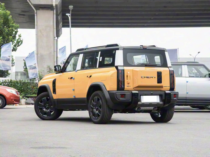 再来看车尾部分,新车的侧开式电吸尾门支持单手操作,外挂式储物箱替代传统备胎设计,既保持硬派风格又降低后门重量。竖向尾灯与车头灯组呼应,黑色下包围提升防刮性,尾门关闭角度可通过中控屏自定义。后保险杠集成拖车钩接口,但未配备全景影像摄像头,倒车需依赖540°透明底盘系统。